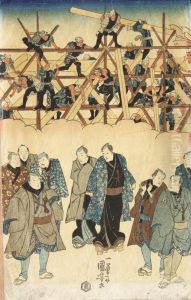 Actors Ichikawa Yaozo And Others In An Interior Scene