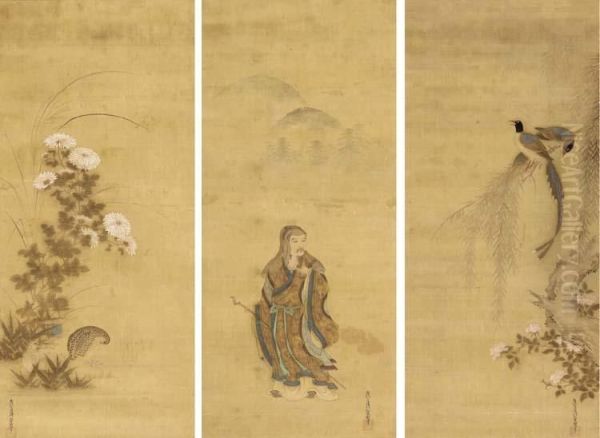 The Chinese Poet Tao Yuan-ming (to No Enmei); Long-tailed Birds Onwillow; Quails And Chrysanthemums