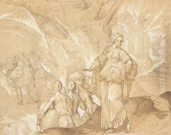 Lot's Wife Looking Back At The Destruction Of Sodom Andgomorrah