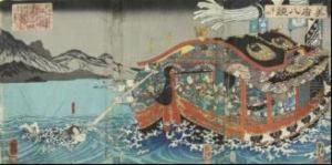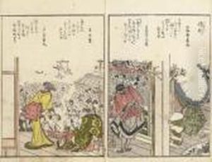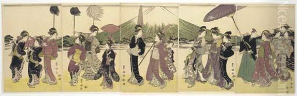 A Parody Of A Daimyo's Procession At The Foot Of Mount Fuji