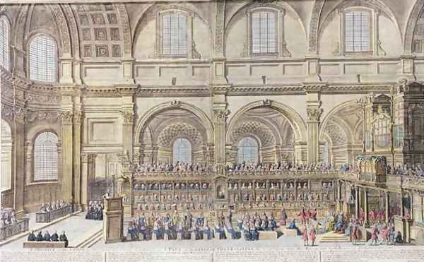 A Prospect of the Choir of the Cathedral Church of St. Paul, on the General Thanksgiving, the 31st of December 1706. Her Majesty and both Houses of Parliament present