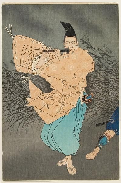 Fujiwara No Yasumasa Playing Flute By Moonlight