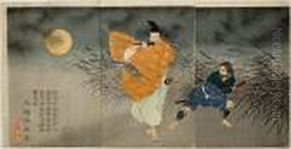 Bring the timeless beauty of Tsukioka Yoshitoshi's Fujiwara No Yasumasa Playing The Flute By Moonlight into your home with a handmade oil painting reproduction. Carefully recreated on canvas by skilled artists using traditional techniques, this piece captures the delicate brushwork, subtle light, and vibrant color of the original masterpiece. With museum-level quality and rich texture, it brings elegance and artistic depth to any space. Enjoy free shipping and make this masterpiece a part of your personal collection.