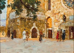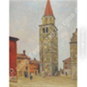 Trieste San Giusto. Kirchganger Auf Dem Platz Vor Der Kirche