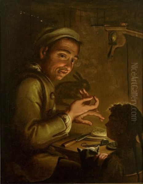 Bring the timeless beauty of Ulrich Glantschnigg's Sitzender Handwerker Fuhrt Einem Kind Bei Kerzenlicht Schattenspiele Vor Und Wirft Einen Hasen An Die Wand. into your home with a handmade oil painting reproduction. Carefully recreated on canvas by skilled artists using traditional techniques, this piece captures the delicate brushwork, subtle light, and vibrant color of the original masterpiece. With museum-level quality and rich texture, it brings elegance and artistic depth to any space. Enjoy free shipping and make this masterpiece a part of your personal collection.