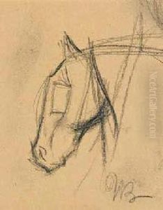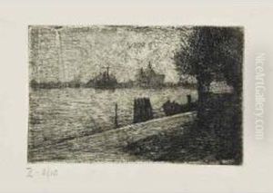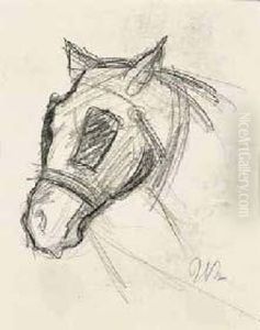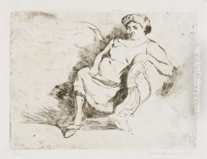 Portrait Of Two Girls, Full Lengths, One Seated Wearing A Red And Blue Dress And Holdinga Posy, And A Dish Of Flowers