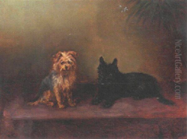 Bring the timeless beauty of unknown's A Cairn Terrier with a Scottie into your home with a handmade oil painting reproduction. Carefully recreated on canvas by skilled artists using traditional techniques, this piece captures the delicate brushwork, subtle light, and vibrant color of the original masterpiece. With museum-level quality and rich texture, it brings elegance and artistic depth to any space. Enjoy free shipping and make this masterpiece a part of your personal collection.