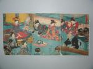 The Famous Triptych Showing Takiyasha Calling Up A Monstrous Skeleton Spectre To Frighten Mitsukuni, Published By Hachi(?), In Circa 1844, Signed