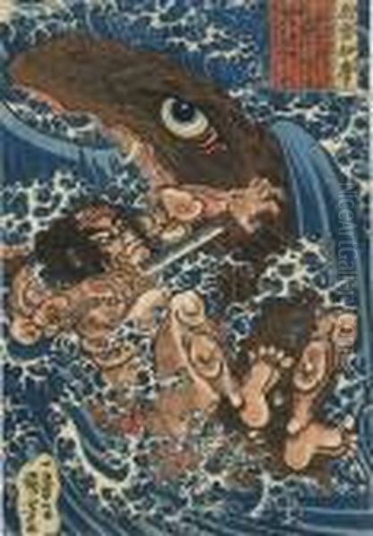 Izumo No Imaro Killing The Giant Shark Which Had Eaten His Daughter, Signed