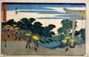 Inari Bridge and Minato Shrine Teppozu plate 77 from the series One Hundred Famous Views of Edo Edo Period Ansei Era