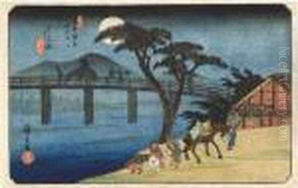 Bring the timeless beauty of Utagawa or Ando Hiroshige's From The Series Kisokaido Rokujukyu Tsugi No Uchi [the Sixty-nine Stations Of The Kisokaido Road], Nagakubo, As Night Falls And The Moon Rises A Man Leads His Pack-horse Back To The Village, While Other Workers Cross The Bridge Behind Him, Signed into your home with a handmade oil painting reproduction. Carefully recreated on canvas by skilled artists using traditional techniques, this piece captures the delicate brushwork, subtle light, and vibrant color of the original masterpiece. With museum-level quality and rich texture, it brings elegance and artistic depth to any space. Enjoy free shipping and make this masterpiece a part of your personal collection.
