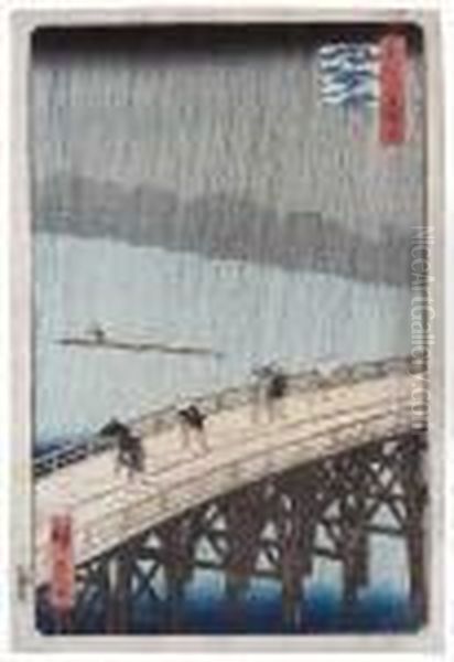 Meisho Edo Hyakkei Oil Painting by Utagawa or Ando Hiroshige