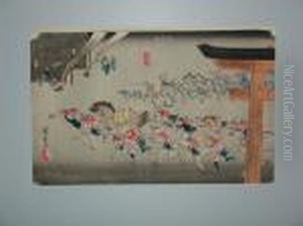 Miya Oil Painting by Utagawa or Ando Hiroshige