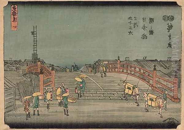 Bring the timeless beauty of Utagawa or Ando Hiroshige's Nippon Bridge into your home with a handmade oil painting reproduction. Carefully recreated on canvas by skilled artists using traditional techniques, this piece captures the delicate brushwork, subtle light, and vibrant color of the original masterpiece. With museum-level quality and rich texture, it brings elegance and artistic depth to any space. Enjoy free shipping and make this masterpiece a part of your personal collection.