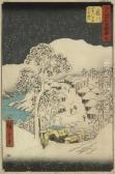 Oban Tate-e, A Woodblock Print Fujikawa, From The Series 'gojusan-tsugi Meishi Zue' , Published In 1858 By Tsutaya Kichizo, And Popularly Known As The Vertical Tokaido; And Kunisada , A Print With Immortals On Clouds Standing Above Figures In An I
