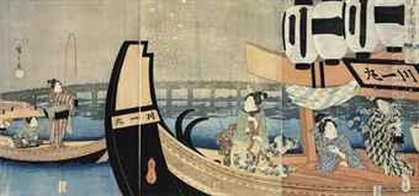 Toto Ryogokubashi Noryo Hanabi No Zu (view Of Enjoying Fireworks In The Evening Cool At Ryogoku Bridge In The Eastern Capital)