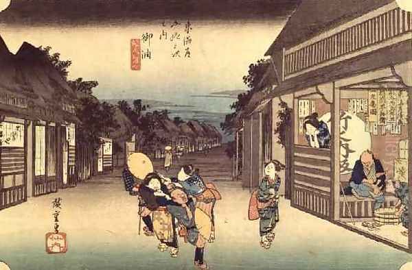Bring the timeless beauty of Utagawa or Ando Hiroshige's Waitresses soliciting travellers Goyu from the series 53 Stations of the Tokaido into your home with a handmade oil painting reproduction. Carefully recreated on canvas by skilled artists using traditional techniques, this piece captures the delicate brushwork, subtle light, and vibrant color of the original masterpiece. With museum-level quality and rich texture, it brings elegance and artistic depth to any space. Enjoy free shipping and make this masterpiece a part of your personal collection.