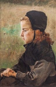 Studie Zu Sitzender Bauerin Mit Schussel