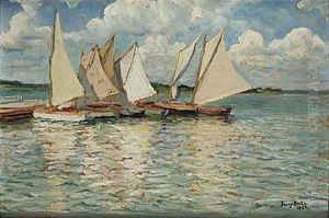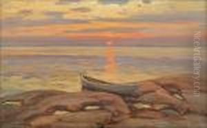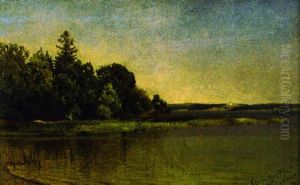 Maisema Vesijarvelta Oil Painting by Vaeinoe Haemaelaeinen