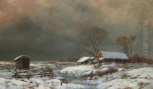 Winter Landscape With Cottages