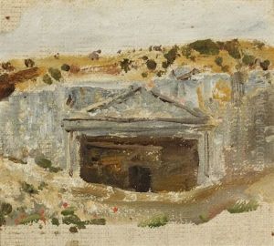 Landscape With Well And Cypress Trees