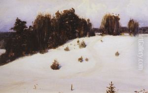 A Winter's Landscape With Vagrants Walking Towards A Big City