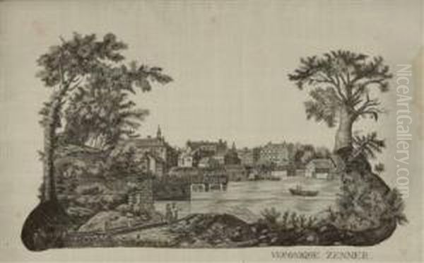 "wohl Franzosische Stadt An Einem Fluss Mit Personenstaffage"