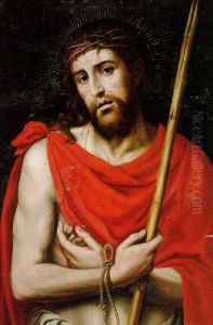 Bring the timeless beauty of Vicente Juan (de Juanes) Masip's A Bishop And A Young Boy Weaving A Basket In An Interior into your home with a handmade oil painting reproduction. Carefully recreated on canvas by skilled artists using traditional techniques, this piece captures the delicate brushwork, subtle light, and vibrant color of the original masterpiece. With museum-level quality and rich texture, it brings elegance and artistic depth to any space. Enjoy free shipping and make this masterpiece a part of your personal collection.