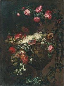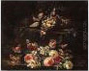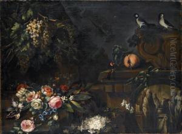 Rose, Anemoni E Gelsomini Con Frutta E Frammenti Architettonici