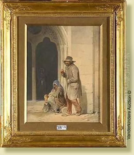 Lesmendiants A La Sortie De L'eglise, Aquarelle Sur Papier. Signee Enbas A Gauche V. Camoin. Ecole Francaise. Dim.: 26x19,5cm
