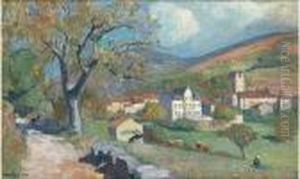 Buron En Auvergne Huile Sur Carton, Signee En Bas A Droite