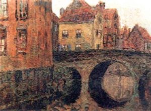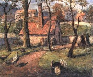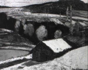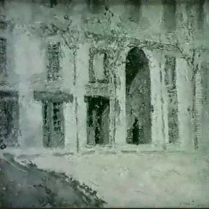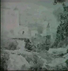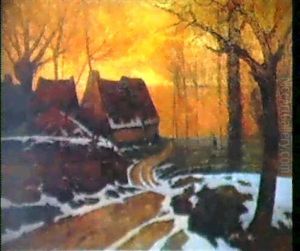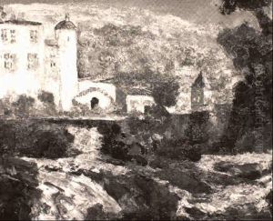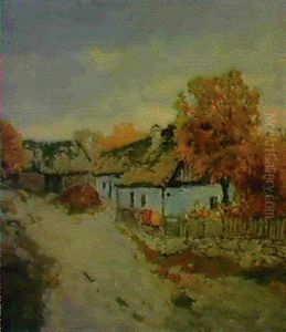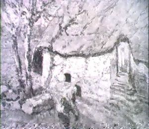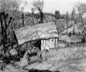 Rue De Village; Porte Au Dos Une Esquisse, Cheval Et Charrette