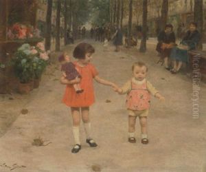 Children In A Park (+ A Couple On A Park Bench; Pair)