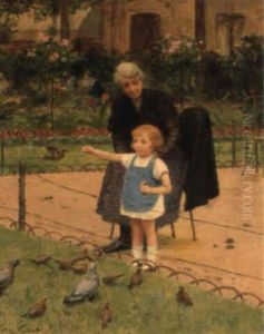 Feeding Pigeons With Grandmother