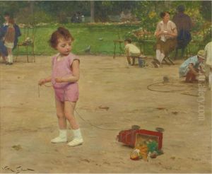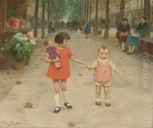 Children In A Park; And A Couple On A Park Bench
