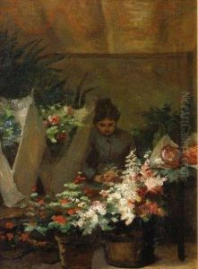 Marchande De Fleurs Et Des Fruits Dans Un Square A Paris