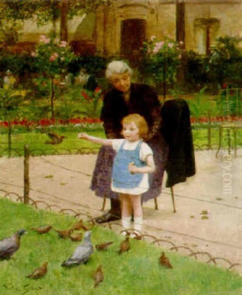 Feeding The Birds Oil Painting by Victor Gabriel Gilbert