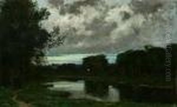 Victor Gilsoul . Sunset Over Pond And Chateau