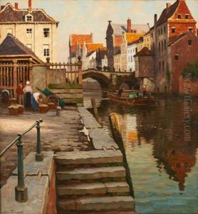 Dordrecht (temps Pluvieux), Dutch Canal Scene On A Rainy Day