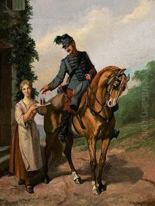 Kavallerist Zu Pferd Empfangt Ein Glas Rotwein