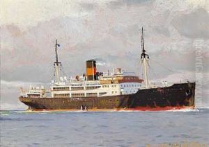 Marinemaleri Med Gdynia-amerika-liniens Passagerskib Ms "batory" (+ Smabade Set Fra Kysten, 1930; Pair)