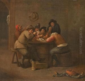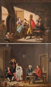 Zwei Zecher Mit Schankmagd In Einem Wirtshaus