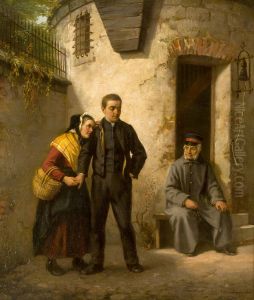 Landsbyscene Med Italienerinde Og Hendes Datter, Der Kober Kirsebaer
