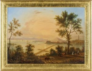 Lake George View With Figures And Buildings