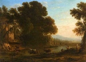 Romantic Landscape With River, Figures, Cows And Ruins