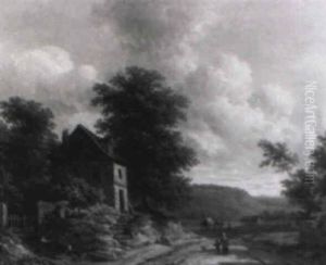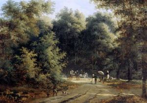 Peasants On A Country Road With A Lake And Hills Beyond