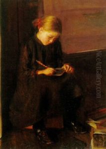 Skoletime, Interior Med Pige Der Skriver