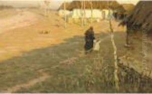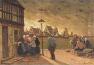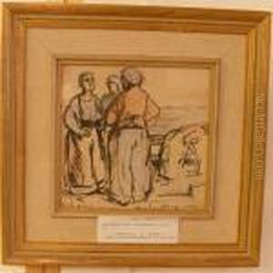 Fisherwomen In Normandie Oil Painting by Viktor Ivanovich Zarubin