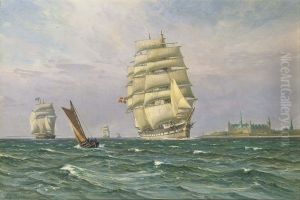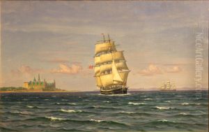 Sailing ships off Kronborg, Denmark.