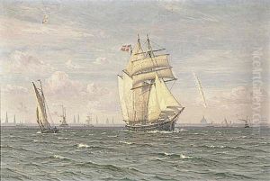 Sailing ships at sea.